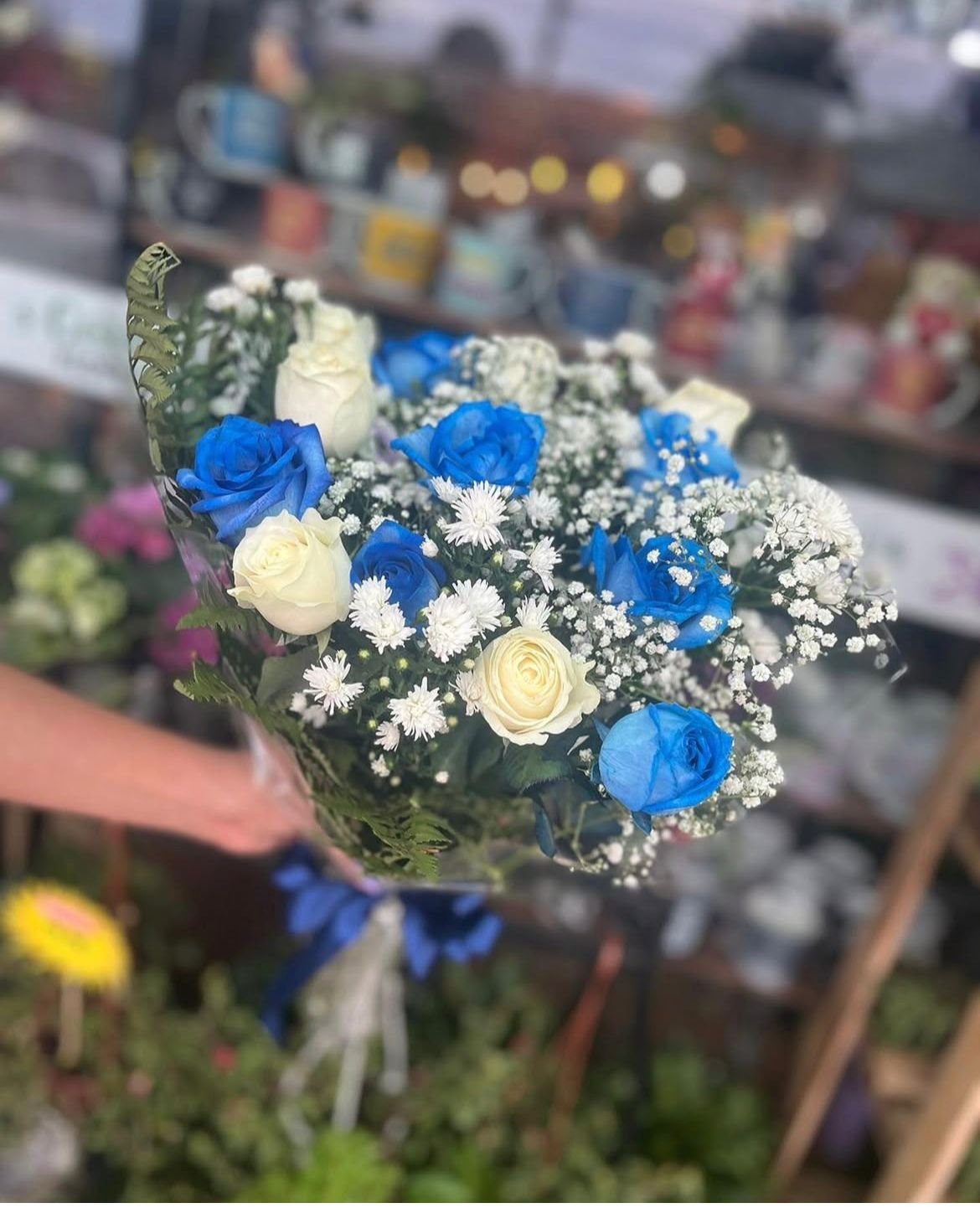 A beleza do raro e do inesquecível em um só arranjo. Este buquê imponente combina a singularidade das rosas azuis com a pureza das rosas brancas, criando um contraste sereno e profundo. Cercado por gipsófilas e folhagens delicadas, é o presente ideal para expressar admiração, gratidão ou para celebrar momentos que fogem do comum com muita personalidade.