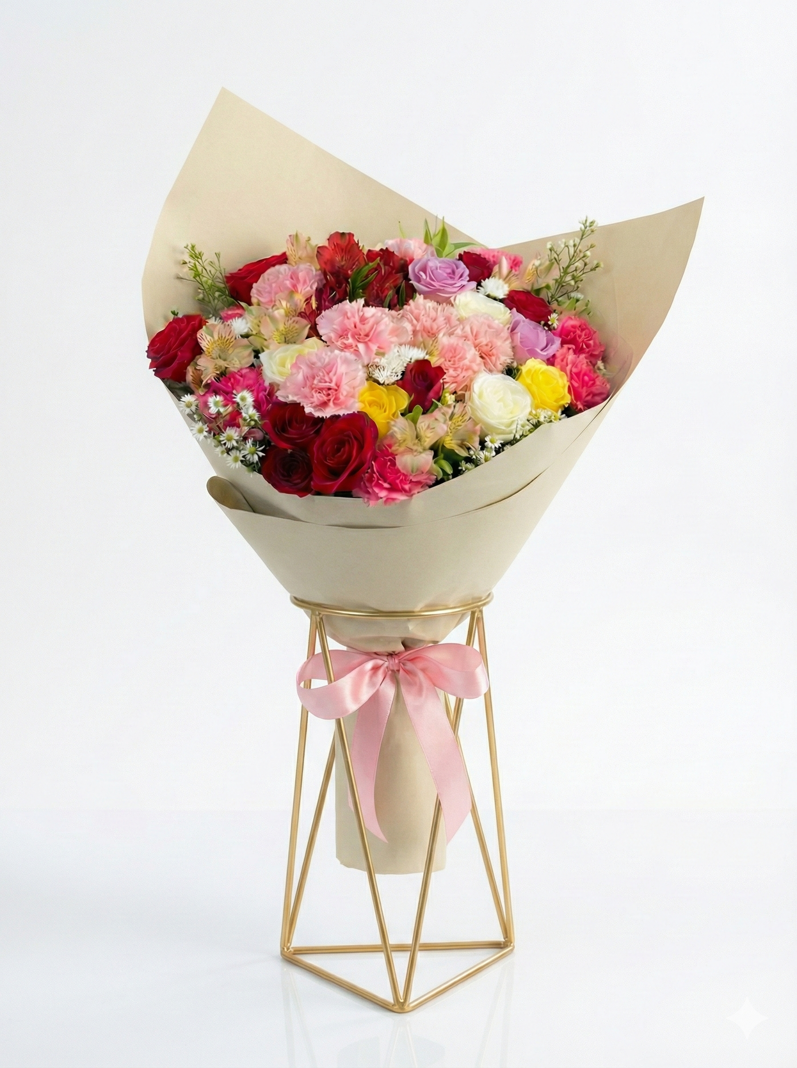 A celebração perfeita em forma de flores. Este buquê exuberante reúne 12 rosas selecionadas em tons vibrantes e variados, criando uma harmonia de cores que encanta e emociona. Envolvido em uma embalagem elegante com acabamento em gipsófilas (mosquitinho), é o presente ideal para expressar gratidão, celebrar amizades ou surpreender alguém especial
