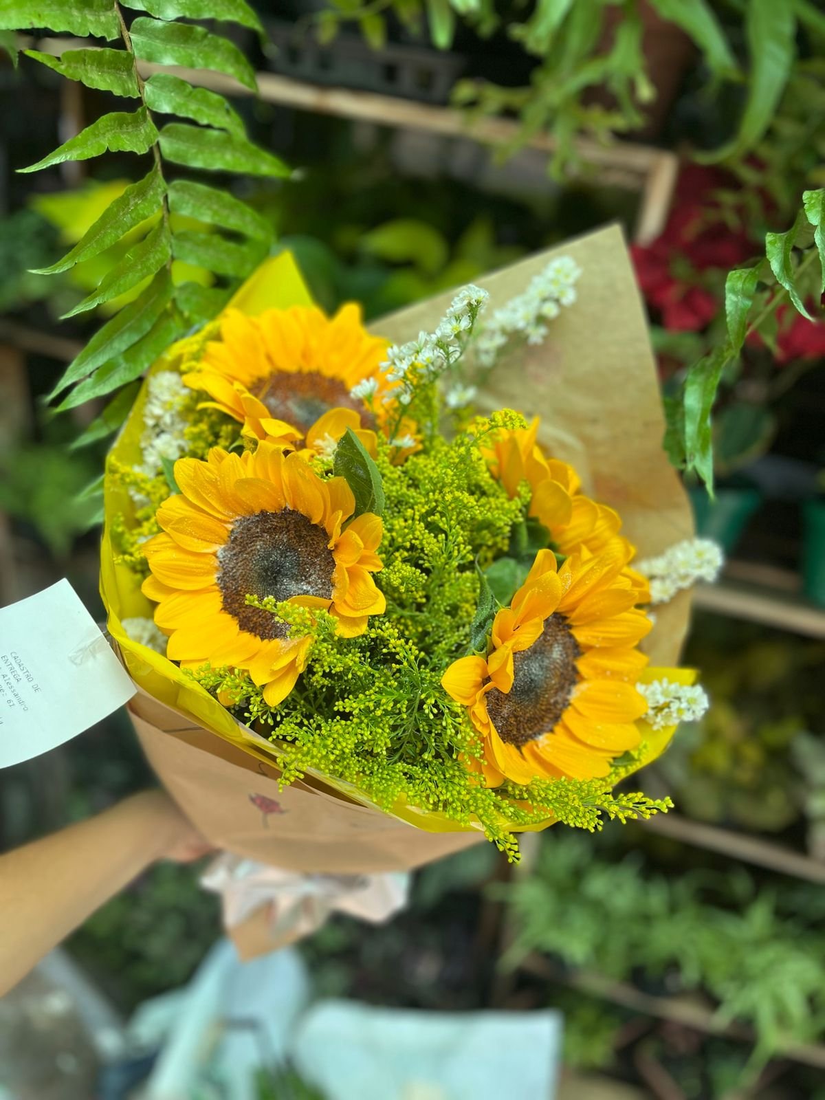 Um feixe de luz para celebrar os melhores momentos. Este buquê reúne 4 girassóis , conhecidos por sua cor vibrante e energia contagiante, simbolizando alegria e gratidão. Com uma montagem moderna, é o presente ideal para iluminar o dia de alguém especial com um gesto autêntico e cheio de vida.