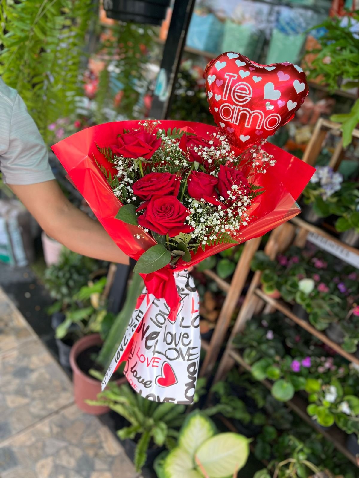 A beleza clássica elevada ao próximo nível. Este buquê imponente apresenta 6 rosas importadas selecionadas, que encantam por seus botões robustos, pétalas aveludadas e um tom de vermelho profundo e apaixonante. Finalizado com a leveza das gipsófilas e um balão metalizado “Te Amo”, é o presente perfeito para expressar sentimentos intensos com elegância e sofisticação.